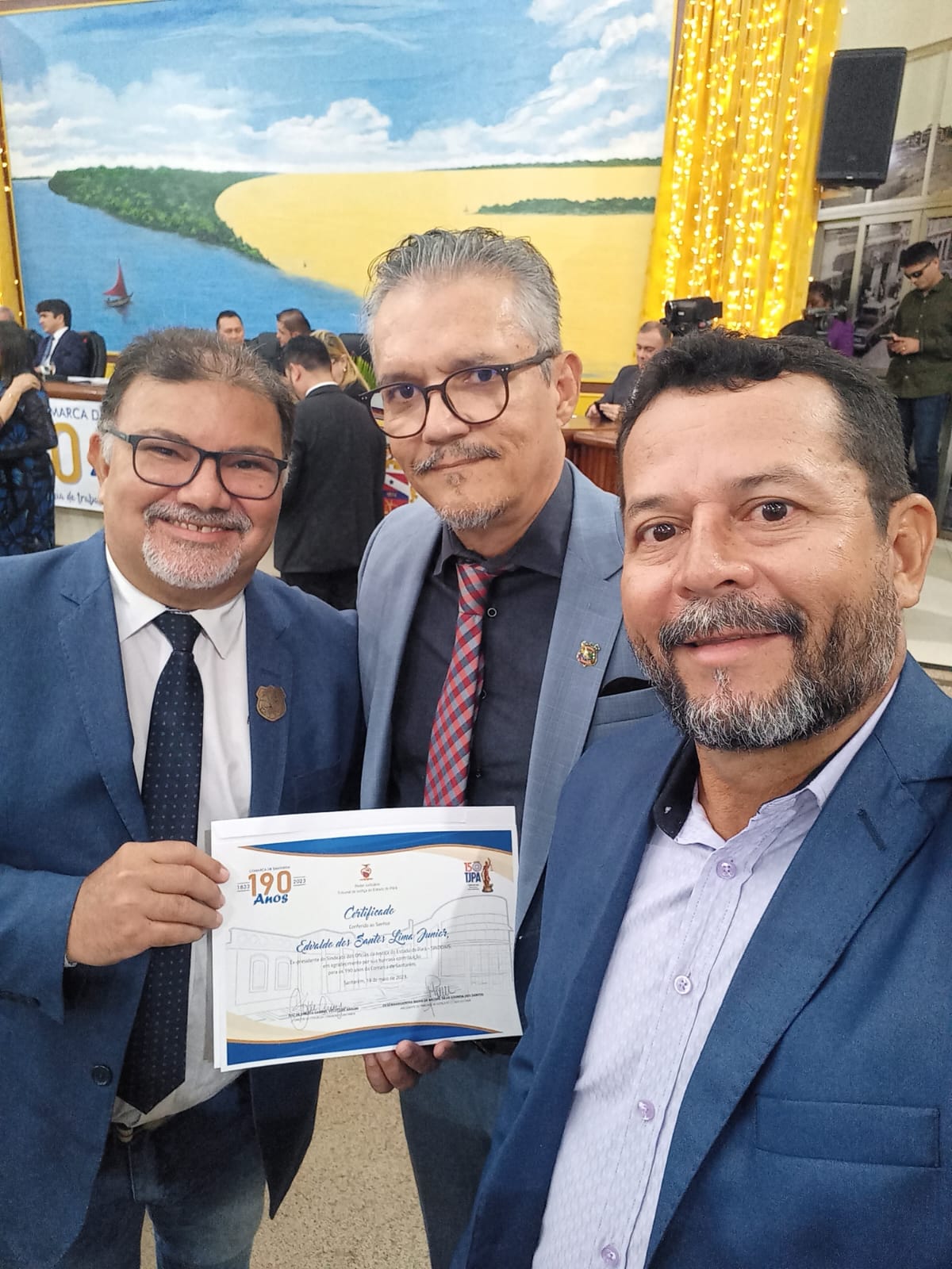 A Diretoria do Sindicato dos Oficiais de Justiça do Pará – SINDOJUS-PA por seu Presidente Mario Rosa e Diretor Jurídico Ronaldo Pampolha, estiveram presentes no evento alusivo aos 190 anos da Comarca de Santarém. Como parte das comemorações foram realizadas duas sessões solenes conjuntas, uma do Legislativo local e outra do TJPA. Nessa ocasião foram homenageados pessoas, órgãos e entidades que participaram efetivamente no processo histórico de crescimento da qualidade da prestação jurisdicional realizadas na Comarca de Santarém. Após o protocolo de abertura da solenidade, realizada na Câmara de Vereadores, com a plateia lotada, se sucederam representantes ilustres do Legislativo Municipal e Poder Judiciário. Entre os homenageados destacamos os ex-presidentes, Des. Leonardo Noronha e Desa. Célia Pinho e a Desa. Maria Edwirges presentes no evento e entidades como a Defensoria Pública, Ministério Público, Marinha do Brasil, AMEPA e SINDOJUS. Edvaldo dos Santos Lima Junior, foi homenageando, pelo seu trabalho frente a Presidência do Sindicato durante seu mandado em que buscou melhoria significativa para os oficiais da comarca de Santarém, sendo a homenagem recebida pelo atual Presidente Mario Rosa em face de sua ausência. O Sindojus-Pa parabeniza a organização do evento na pessoa do Oficial de Justiça Nerivaldo Cesar, pela qualidade e o sucesso do acontecimento, que será concluído amanhã, dia 19/05 com uma Ação Social, onde será fornecido serviços de Registro de Nascimento, Carteira de Identidade, Consultas Médicas e outros à população do município. Destacamos também a fala do Prefeito Francisco Nelio Aguiar Da Silva, que enfatizou a harmonia entre os agentes públicos atuantes no município, destacando as contribuições dos desembarcadores, juízes e outras autoridades e do Sindicato dos Oficiais de Justiça do Pará que ao longo dos anos vem contribuído significativamente para o crescimento do Judiciário local.