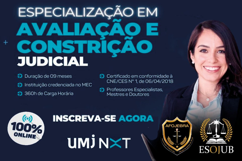 A Escola Superior dos Oficiais de Justiça do Brasil (ESOJUB), em parceria com o Centro Universitário Mário Pontes Jucá (UMJ), abre inscrições para a pós-graduação em Avaliação e Constrição Judicial. A iniciativa é uma realização da AFOJEBRA, que atendeu a …